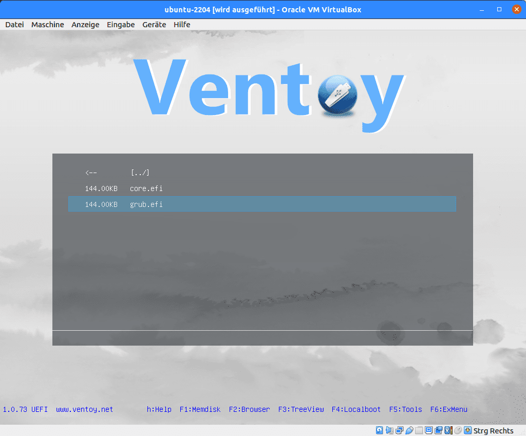 Zunächst erscheint das bekannte ISO-Auswahlmenü von Ventoy: